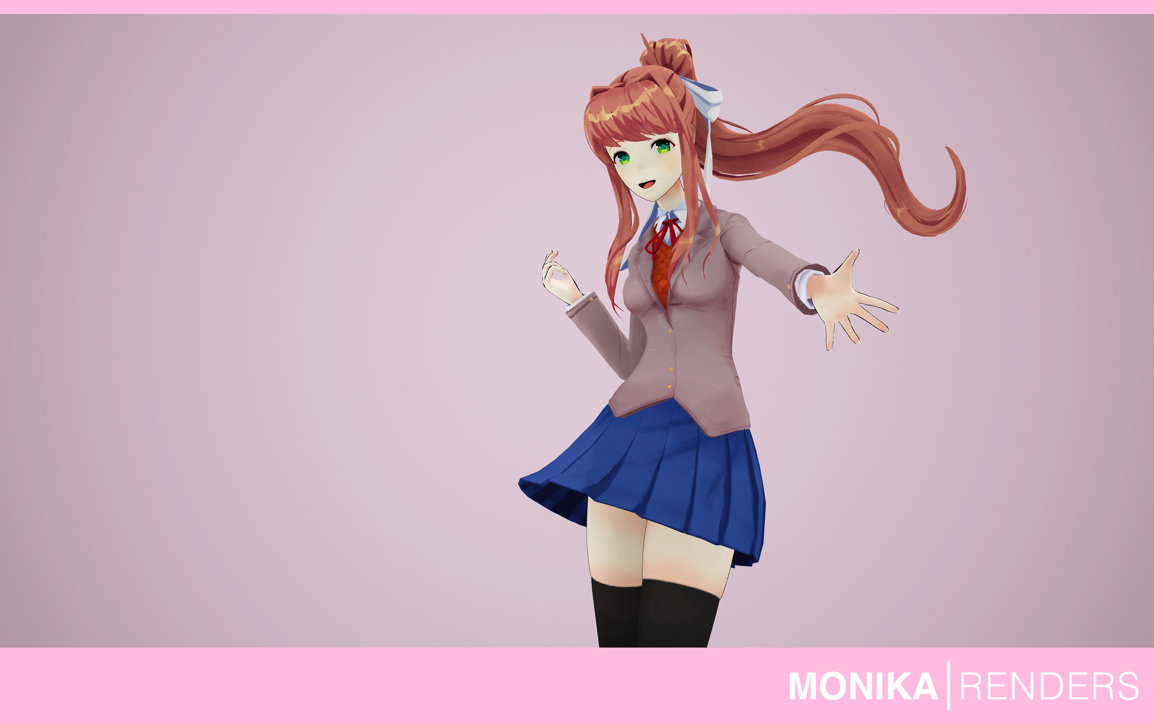 A Doki Doki Literature Club fan work. Web Web Stylistically Monika is the only girl to have her hair tied back be wearing black thigh-high socks instead of knee-length white and have pink-tipped shoes. Free easy returns on millions of items.